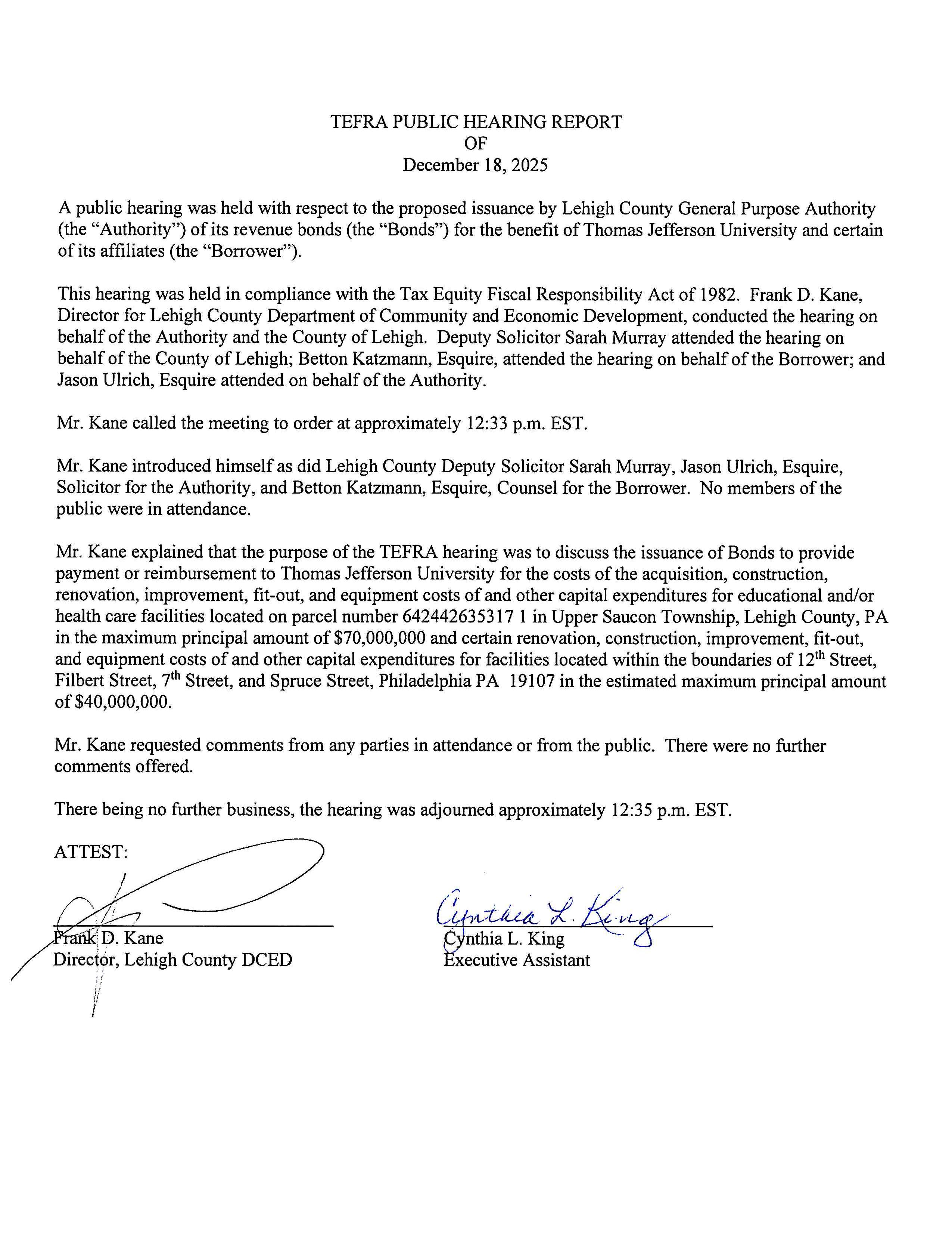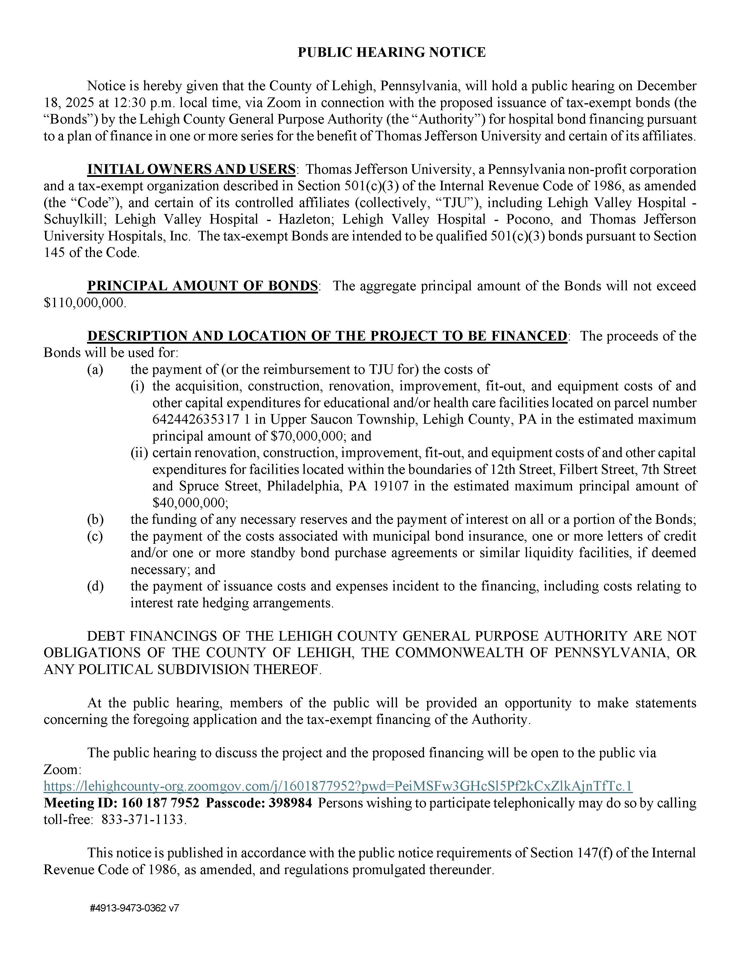 The Lehigh County General Purpose Authority (LCGPA) provides a tax exempt financing option for certified non-profit organizations.
